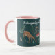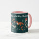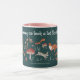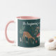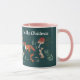 Caneca fofa com uma ilustração natalina clássica tradicional verde e rosa nostálgica e fofa com animais da floresta em meio à natureza. O texto diz: 'Está começando a parecer muito com o Natal' Arte original de Caroline Bonne Müller