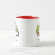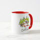 Uma caneca design de Natal bonita e colorida, com um urso polar, pinguim e rato, todos com lenços e skates de gelo com árvores cobertas de neve e texto que diz É Natal!