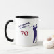 Esta linda caneca de aniversário mostra um marinho de golfista azul-silhueta tocando um cheio. O texto azul e vermelho próximo à imagem diz "Ainda dirigindo o DURO de TI para 70". Claro que é uma conversa de escritório para qualquer homem que ama golfe! A imagem é impressa em ambos os lados, com seu nome ou outro texto personalizado entre eles.