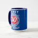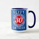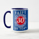 aniversário de 30 anos. Cores brilhantes e design ousado. Caneca de aniversário numerada. A design é repetida de ambos os lados. 30 anos.