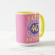 aniversário de 40 anos. Cores brilhantes e design ousado. Caneca de aniversário numerada. A design é repetida de ambos os lados. 40 anos.