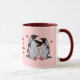Compartilhe do amor com esta caneca bonito do casal do pinguim e do aniversário do design dos corações! Ilustração gráfica de um casal loving do pinguim do divertimento. Personalize este design com sua nomes pessoais ou mensagem especial.