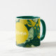 Caneca Aniversário do Prato de Gato Verde e Amarelo Perso