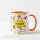 Eu desenhei manualmente todas essas folhas de outono e as pintei manualmente com aquarela, por isso elas parecem tão selvagens e livres. Eles são combinados com uma bela citação da clássica "Anne of Green Gables: "Estou tão feliz por viver em um mundo onde há Octobers." A citação vai de um lado e o nome do dono da caneca vai para o outro.