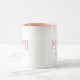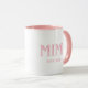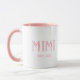 Design de caneca de café Mimi com ano de fundação apresentando um conjunto de fontes carimbadas rosa em um fundo branco. Clique em personalizar para editar a cor do fundo!. Visite nossa loja para ver esta caneca em uma grande variedade de nomes de avôs.
