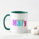 Esta bela design apresenta o nome "Mary" em letras na moda, divertidas e coloridas, com até dois campos de texto personalizáveis para um sobrenome ou outro toque pessoal. A caneca personalizada é um presente pensativo e encantador para qualquer "Mary" em sua vida, seja ela um membro da família, mãe, filha, avó, professora, vizinha, amiga, enfermeira, ou qualquer pessoa que você queira celebrar. Para aqueles chamados Mary, esta design única é a maneira perfeita de desfrutar de uma xícara de café forte e começar o dia com uma vibração alegre. Para solicitações ou perguntas especiais, entre em contato com o artista em wafadahdalcreates@gmail.com. © Wafa Y. Dahdal - Todos os direitos reservados. WD Art