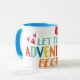 Aposentado. Que a aventura comece. Uma caneca colorida divertida com coração e etiqueta reformada.