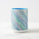 Uma caneca com as cores azul, verde e roxo.