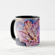Caneca Aquarela de Flor Roxo Tropical em um Log