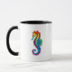 Articulação artificial, brilhante, arco-íris, cavalo de mar poligonal sobre fundo branco. Tatuagem brilhante.