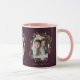 Cartão de Natal moderno elegante floral bonito Férias Foto Arco. Floral botânico em cores pastéis suaves rosa verde e vermelho em um fundo burgundy escuro cartão de natal. Incluídos estão pinheiro botânico, flores, raminhos, folhas, frutas e botões, juntamente com tipografia moderna em branco, lendo "Feliz Natal". Arte original de Caroline Bonne Müller