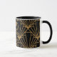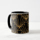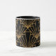 Esta caneca tem um design de Arte Deco de ouros e triângulos em ouro num campo de preto.