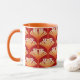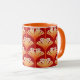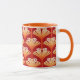 Mug na reprodução de uma lírio estilizada, Art Deco, padrão de papel de parede - um gradiente de laranja de chama profunda a branco, acentuado com ouro de mostarda, sobre um fundo laranja tangerino profundo