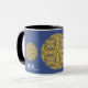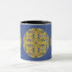 Aproveite seu café matinal em um caleidoscópio, uma caneca de presente para você e seus entes queridos. Reflexão. Harmonia e equilíbrio em amarelo com um toque de azul.