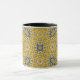 Aproveite seu café matinal em um caleidoscópio, uma caneca de presente para você e seus entes queridos. Reflexão. Harmonia e equilíbrio em amarelo com um toque de azul.