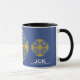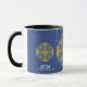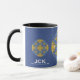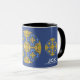 Aproveite seu café matinal em um caleidoscópio, uma caneca de presente para você e seus entes queridos. Reflexão. Harmonia e equilíbrio em amarelo com um toque de azul.