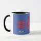 Aproveite seu café matinal em um caleidoscópio, uma caneca de presente para você e seus entes queridos. Reflexão. Harmonia e equilíbrio com um toque de roxo.