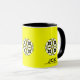 Aproveite seu café matinal em um caleidoscópio, uma caneca de presente para você e seus entes queridos. Reflexão. Harmonia e equilíbrio com um toque de amarelo.