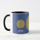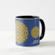 Aproveite seu café matinal em um caleidoscópio, uma caneca de presente para você e seus entes queridos. Reflexão. Harmonia e equilíbrio em amarelo com um toque de azul.