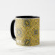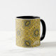 Aproveite seu café matinal em um caleidoscópio, uma caneca de presente para você e seus entes queridos. Reflexão. Harmonia e equilíbrio em amarelo com um toque de azul.