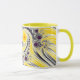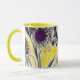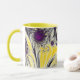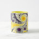 Esta caneca combo colorida apresenta um fractal roxo abstrato em amarelo, preto e roxo.