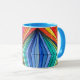 Uau, seus amigos e colegas de escritório com esta caneca brilhante! Ilustração de arte colorida e brilhante com arte de padrão geométrico desenhada à mão em um esquema de cores vívido e psíquico do arco-íris. Esta design foi desenhada à mão e colorido à mão pelo artista visual Sacha Grossel e foi inspirada pelos movimentos de pop-arte e de arte da década de 60.