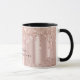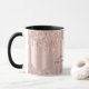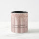 Caneca Personalizada de Dpingos de Brilho Dourado Rosa Tendência para Artistas de Maquiagem, especialistas em extensão de cílios, profissionais de beleza e garotas glamorosas e legais! Este modelo de caneca de luxo apresenta detalhes em dourado rosa e falso foil metálico rosa-bege sob brilho cintilante. Detalhes pretos personalizáveis e imagem de fundo personalizada.