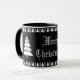 Árvore de Natal e Padrão de Estrelas Modernas Pretas e Brancas com texto personalizado Feliz Natal em Script Elegante, você pode alterar ou excluir o texto, Mug de Café de Férias de inverno