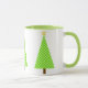 Mug em uma tomada moderna simplificada de um clássico motif de café da árvore de Natal, bolinhas verdes limões