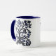 Mug em uma flor estilizada e folha, árvore design em azul de cobalto escuro sobre fundo branco