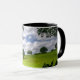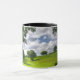 Árvores e ovelhas no campo nesta relaxante cena real. Sip e sonhe fora.