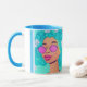 As Mulheres com Flores Café Mug vibrantes de cores azuis, rosa, aqua, roxo e amarelas.