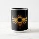 Asas mecânicas brilhantes, com engrenagens e faixa redonda de latão. Steampunk
