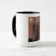 Quem não pode ser movido pela beleza da lua que aumenta sobre madeiras em um céu crepuscular? Aprecie seu café que pensa da imagem positiva da beleza da natureza no por do sol.