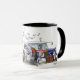 Esta é outra design criada com personagens do meu livro, "The Kid From 5the Street Creek". Nosso carteiro era uma pessoa muito fácil. Ele sempre veio ao meio-dia assobiando ou cantando uma melodia feliz. Os animais de estimação o traziam e o seguiam até que ele parava para dar um tapinha na cabeça, falar com eles e colar um presente especial a cada um deles. Elmer era o melhor carteiro do mundo. O serviço postal dos EUA também sabia disso e pediu-lhe para treinar todos os novatos quando eles vieram trabalhar. Esta caneca junto com camisetas iguais é a minha maneira de lembrar e honrar uma pessoa muito gentil e humilde, Elmer nosso carteiro.