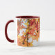 Autumn Sycamore Mug - Esta caneca apresenta uma design pitoresca das folhas de uma servejeira, com folhas de outono vibrantes em tons de amarelo, laranja e vermelho. Os ramos da árvore se esticam criando uma moldura para o céu do outono, evocando a sensação de estar ao ar livre em um dia de queda nítido. A design é uma representação colorida da estação, perfeita para aqueles que apreciam a beleza da natureza e a folhagem em mudança. A cor do interior e da alça da caneca pode ser alterada, se desejado.