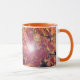 Uma caneca de café com a minha design de folhas de carvalho de outono a balançar em torno de um sol brilhante.