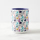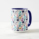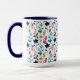 Caneca azul escura de dois tons com bonito cor azul botânica e cor púrpura de outono. Uma caneca elegante para ela - mãe, avó, tia, irmã ou amiga para seu chá ou café.