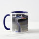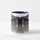Esta Mug mostra uma fotografia original de ZoeSPEAK, um perfil de um herão azul excelente que se posiciona por um canal. A foto é repetida do outro lado da Caneca, com as aves viradas umas para as outras e a frase "tête à tête" entre elas.