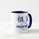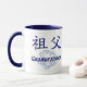 Avô em caráteres chineses/símbolos com um design azul do dragão. O texto é azul marinho. Presente considerável da adopção de China para o vovô.