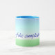 Esta caneca da campainha tem um fundo artístico azul verde e a expressão espanhola de "cumpleaños Feliz." É um artigo elegante para comemorar seu aniversário e um excelente atual para dar aos seus amados. Você pode igualmente combiná-lo com outros acessórios em Artcor7 ou papel de papel de embrulho em Artcor7giftspaper.