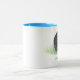 caneca azul da guarnição do urso preto do ~ do urso do ~Mama, cor de água de um urso preto em um campo das flores brancas. inspirado por parques nacionais de Americas e pelos ursos que vivem neles. Arte e design por Sandy Closs