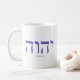 Caneca azul da rotulação de Yahweh (no hebraico)