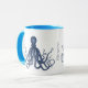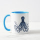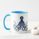 O na moda personalizou a caneca de café com trabalhos de arte do vintage de um polvo feito no azul, em ambos os lados da caneca. Personalize o texto azul, no meio, para ler qualquer coisa que você quer. Grande caneca para a casa ou o escritório.