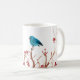 Caneca azul do pássaro e de café das bagas