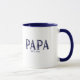 design de caneca de café Papa com ano estabelecido com uma fonte azul estampada em um fundo branco.   Clique em personalizar para editar a cor de fundo!. Visite nosso compro para ver esta caneca em uma grande variedade de nomes de avô.