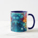 Caneca Azul Turquesa Laranja Álcool e Bolhas de Tinta