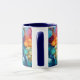 A caneca colorida apresenta um padrão de bolhas de álcool e tinta com o dentro da caneca marinho azul e a alça também. O álcool e o design de tinta são constituídos por marinho azul, roxo, turquesa, rosa e laranja. Outras variedades de álcool e canecas de tinta estão disponíveis em nosso compro e o tipo de caneca e cor pode ser mudado de acordo com sua preferência.