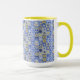 Um legal design de azul, inspirado por azulejos portugueses, e tocado com uma lata de sardinha divertida.