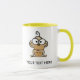 Um macaco bonitinho de desenho animado a fazer os saltos! Ele tem olhos grandes e solteiro. Aproveite uma bebida nesta engraçada e única caneca de macaco bebê! Arte de desenho original de Taylor Addams. Personalize com seu próprio texto.